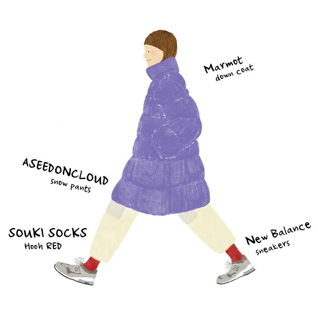 足元は SOUKI SOCKS / Hooh のRED。