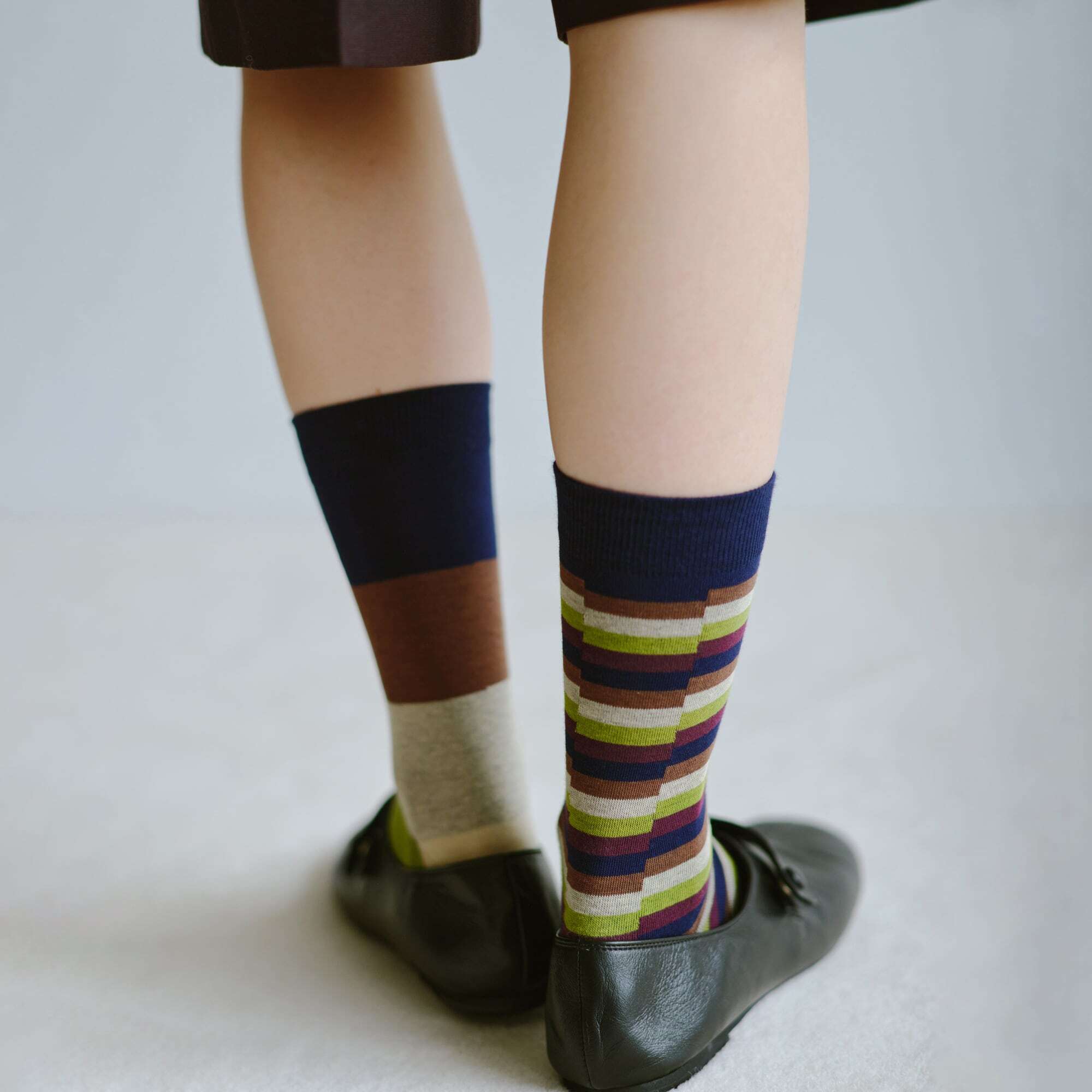 「day daily difference」なにげない日常にちょっとしたきらめきと喜びを、をコンセプトに左右非対称のデザインが特徴的な大人の足元を彩るくつ下を展開。