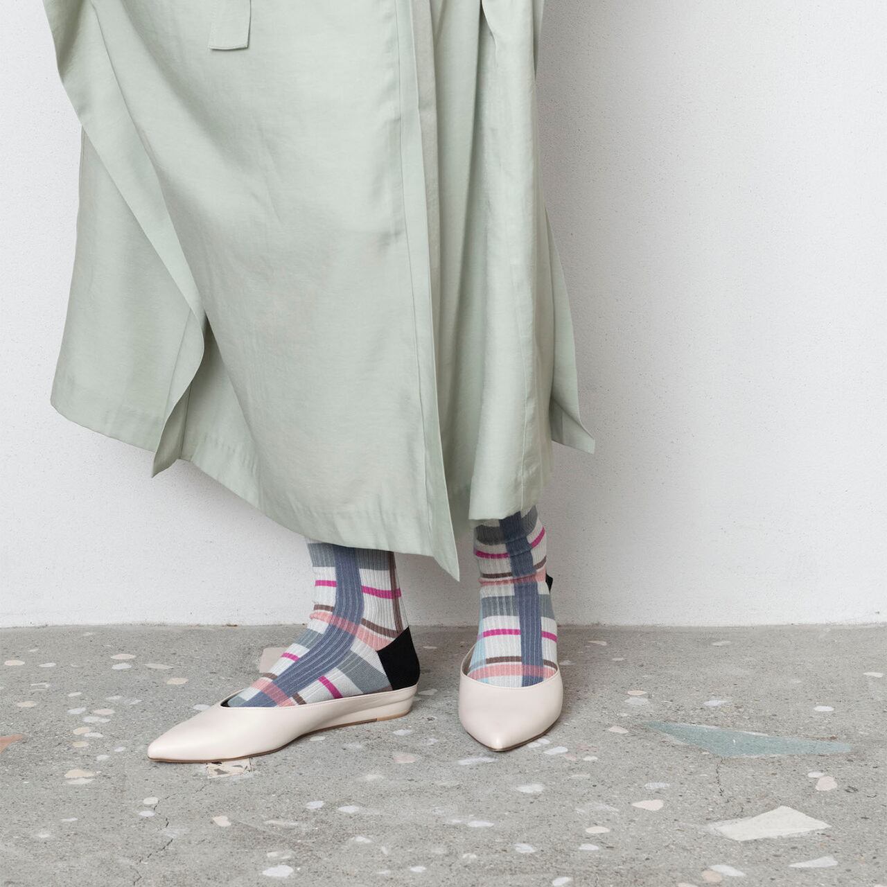 チェック柄のプリントソックス。